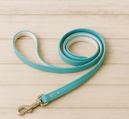 Guinzaglio in semi pelle scamosciata in rosa, beige e acqua marina